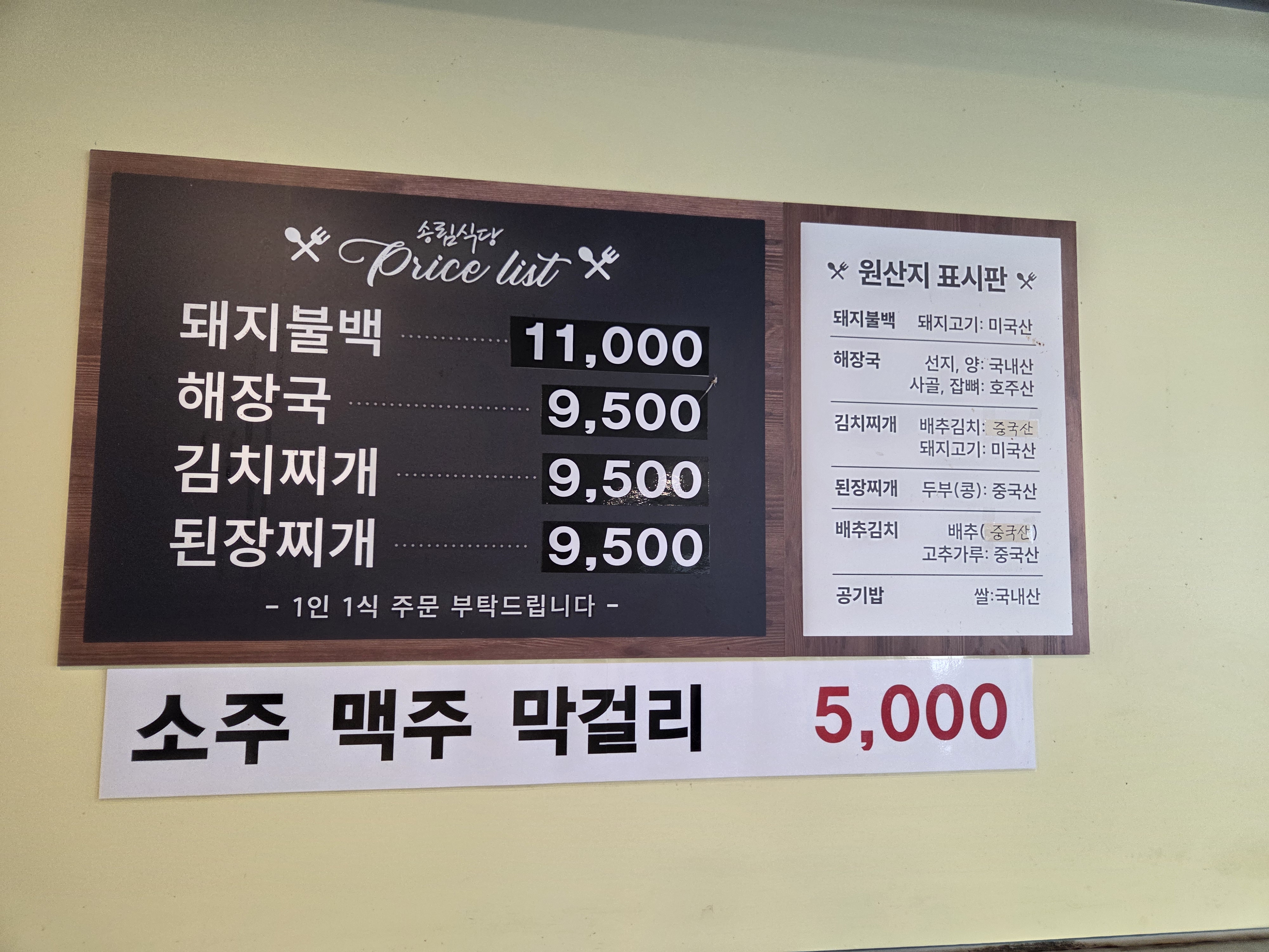 가게 내부는 정말 넓고 테이블도 많아서 놀랐어요. 기사식당 특유의 활기찬 분위기는 그대로지만, 테이블 간격이 넓어서 편안하게 식사할 수 있었답니다. 혼밥 하시는 분들도, 단체로 오신 분들도 많더라고요.